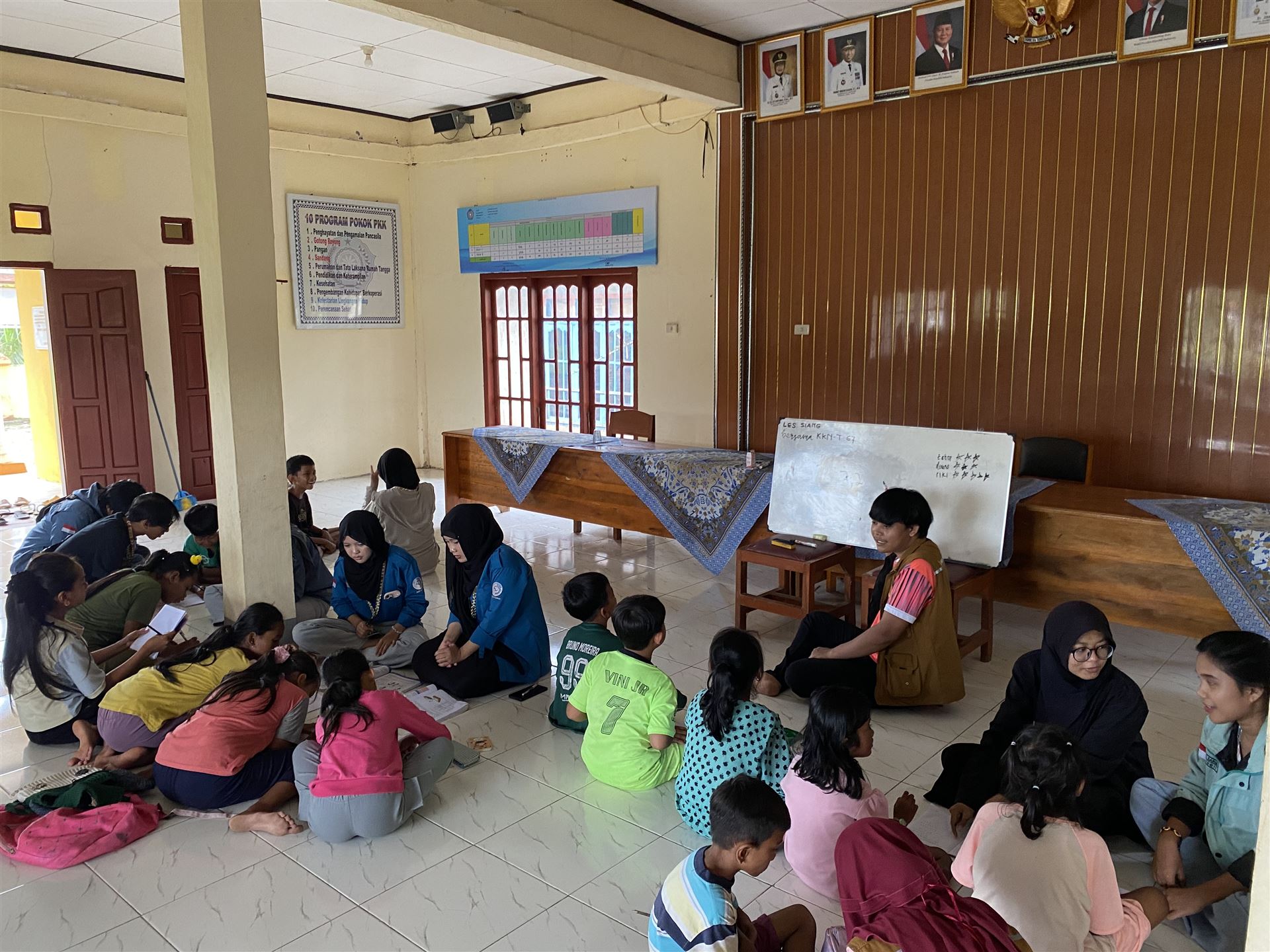 Tingkatkan Semangat Belajar, Mahasiswa KKN-T 67 Gelar Les Bareng Anak-Anak di Balai Desa Gunung Mulyo